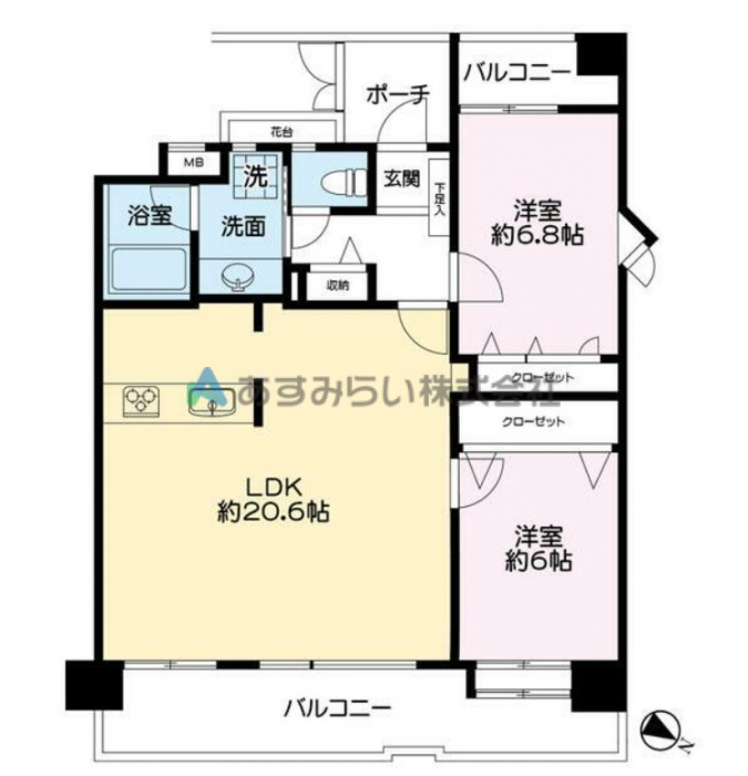 間取り 2LDK (LDK20.6/洋室6.8/洋室6)